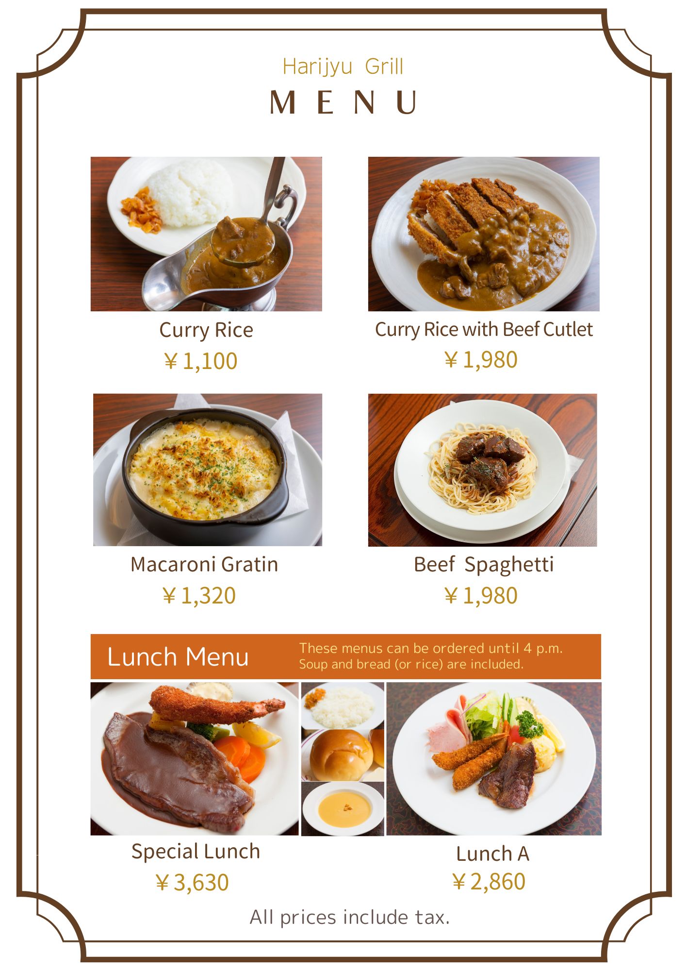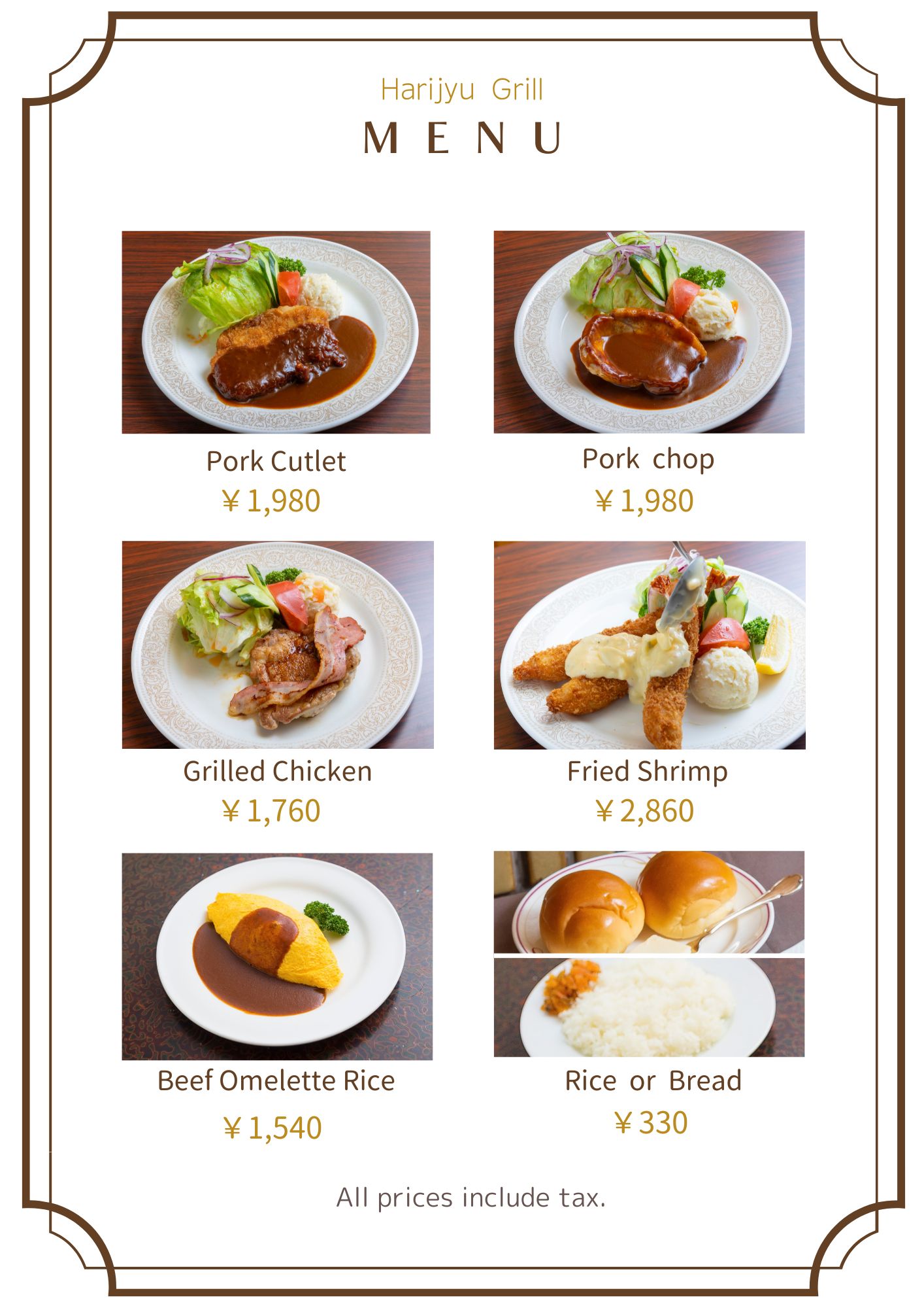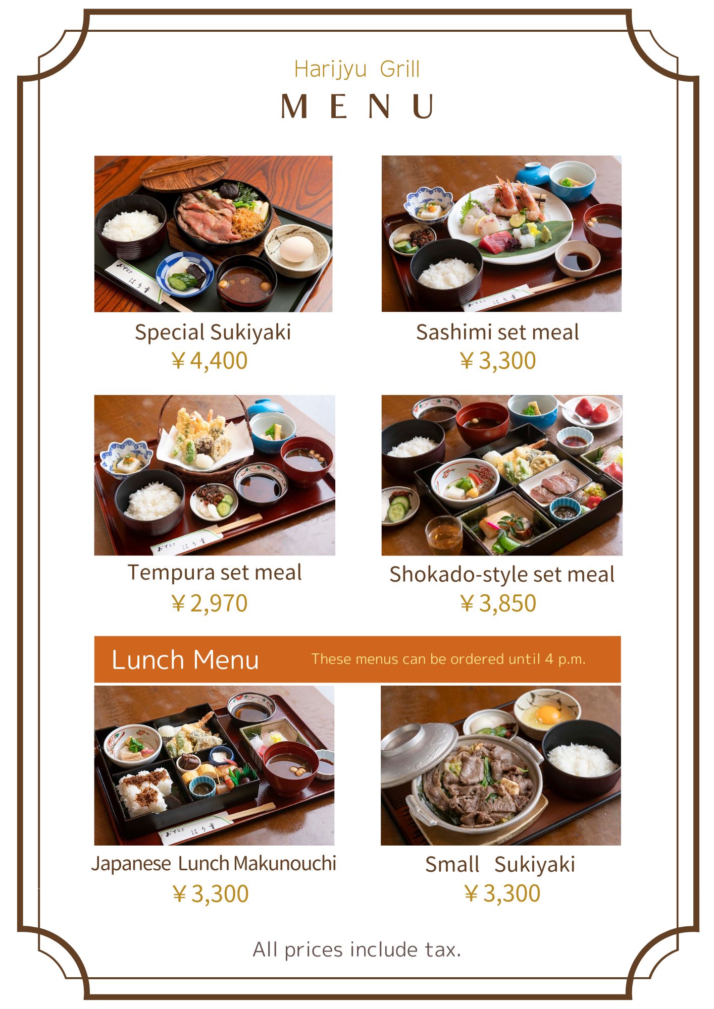 *Harijyu Grill on the 1st floor also has pork and chicken menus.