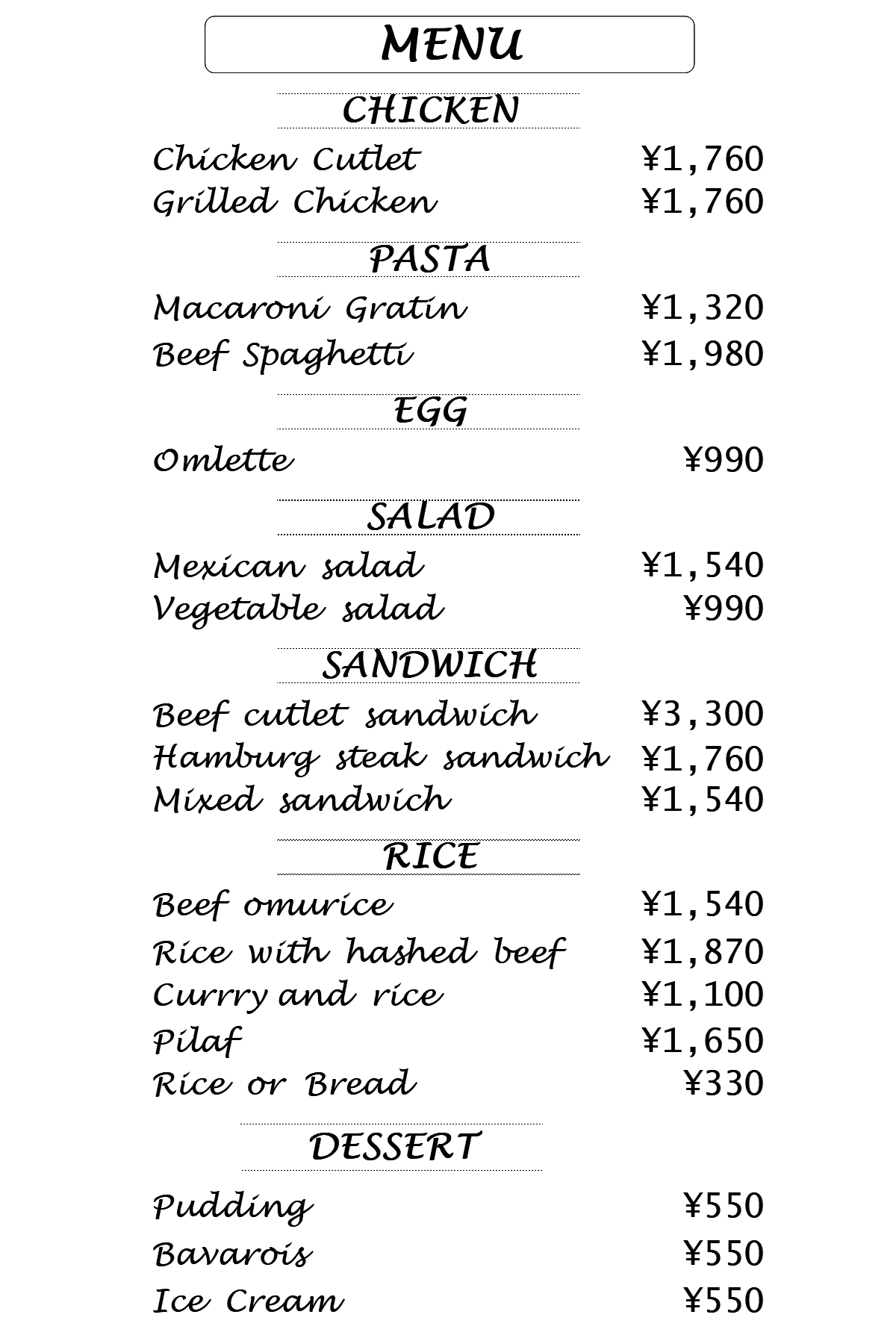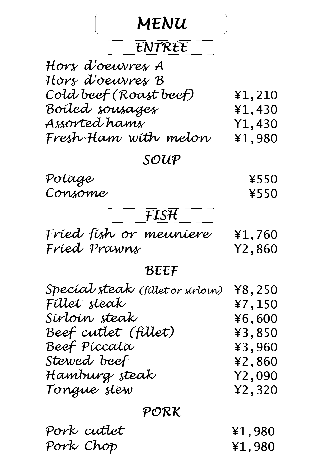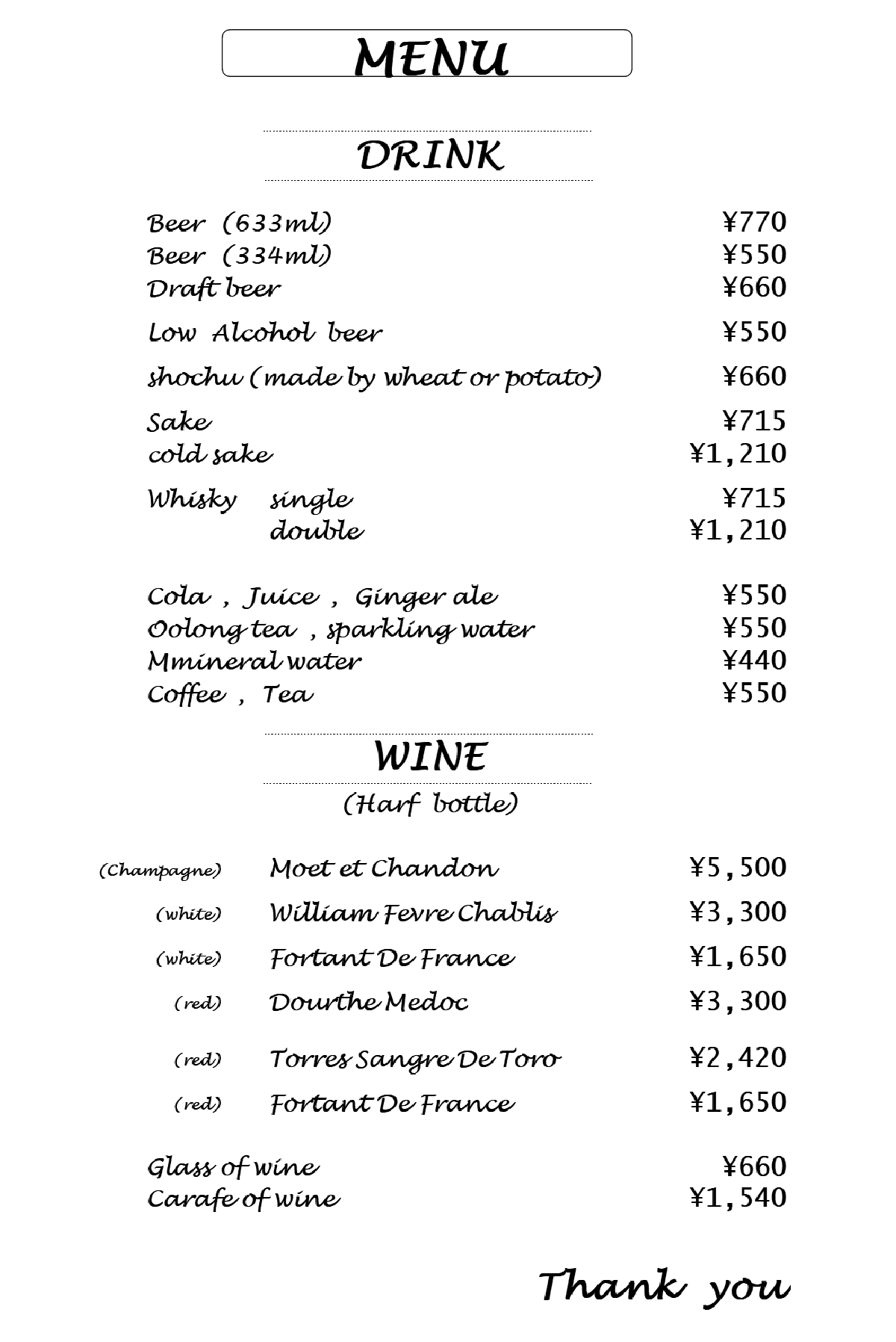 This is the grill menu on the 1st floor of Harijyu-dotonbori main store.
